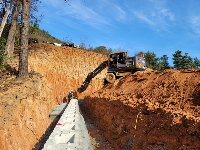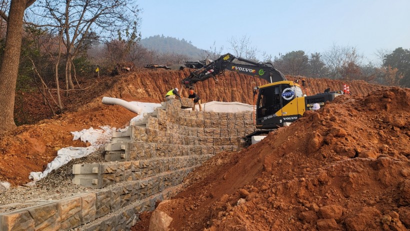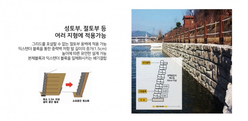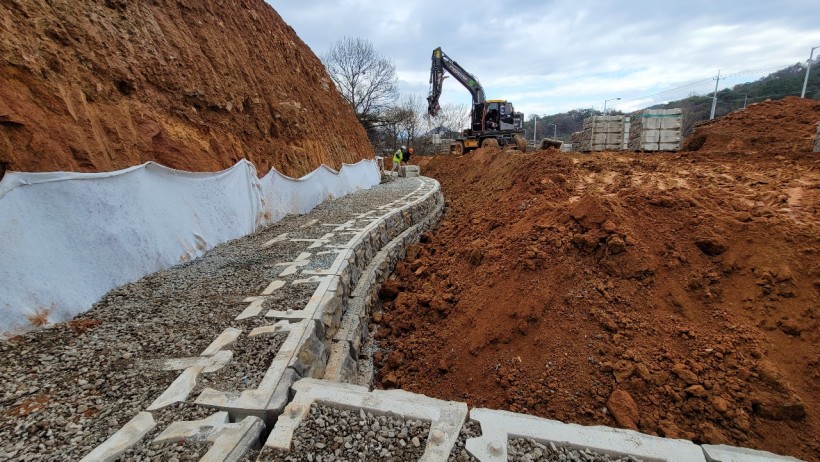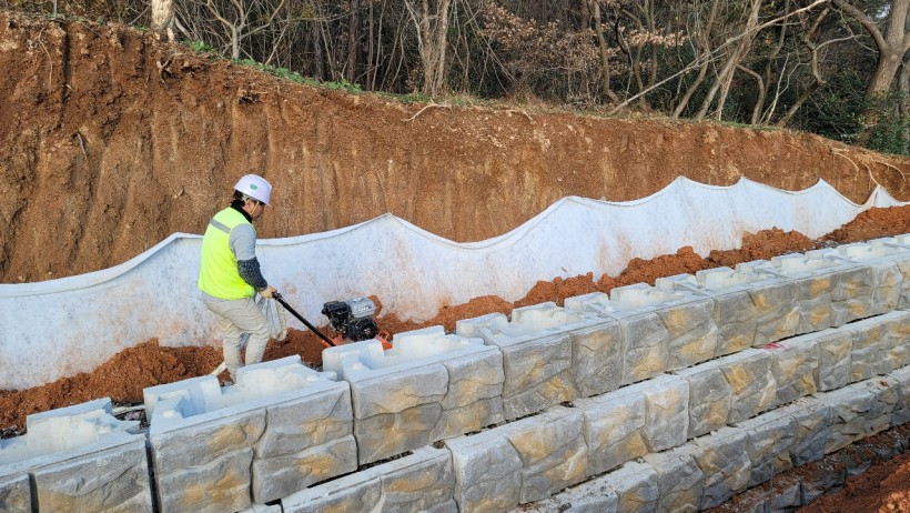 다음글 목록 본문 광주 수소총전소 그래비락시공사진 그래비락용도토목용특징- 지오그리드를 적용할 수 없는 절토부에 옹벽 적용가능- 핀 연결방식을 통한 자유로운 전면경사각 조절(3’~17’)- 익스텐더 블록을 통한 중력벽 저항 발길이 연장(1.5m)- 본체블록과 익스텐더 블록을 일체화 시켜주는 쐐기 결합- 운반비용 절감