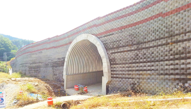 높은 높이와 형태의 변화가 많은 옹벽에 적합한 고강도 옹벽블럭